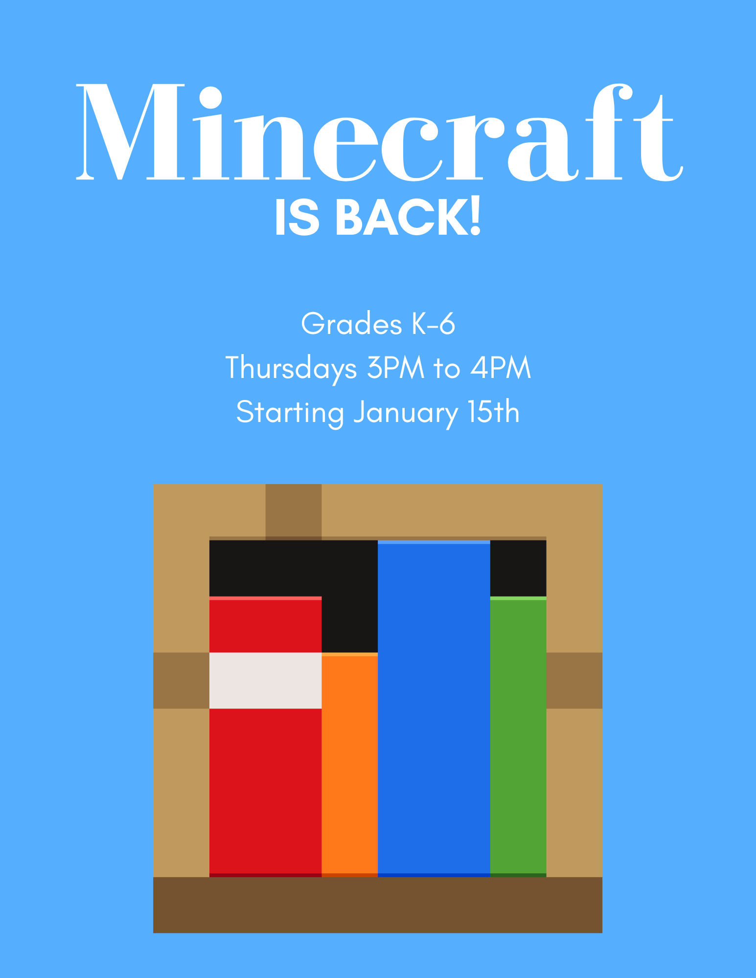 3:00-4:00P: Minecraft Club |