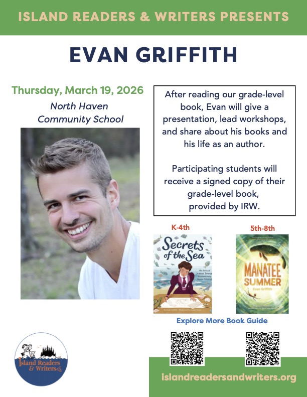 Thursday, March 19, 2026 Island Readers and Writers Visiting Artist Evan Griffith 3:00-4:00P: Gr. K-1 Acting Out @ WCC