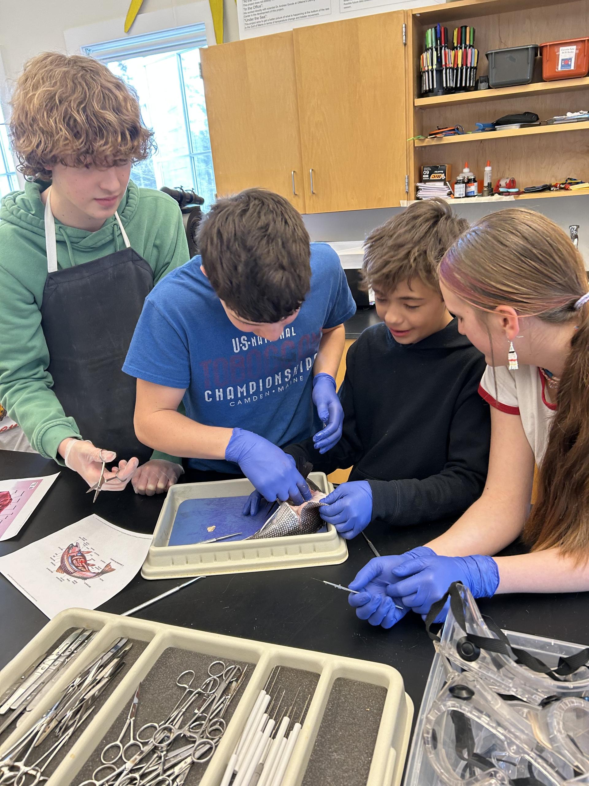 Last week middle and high school students dissected Black Sea Bass (Centropristis striata), a carnivorous bottom-dwelling fish that is currently extending its range northwards into the Gulf of Maine. Thank you to Claire Gabel and Hurricane Island for making this cool dissection possible. |