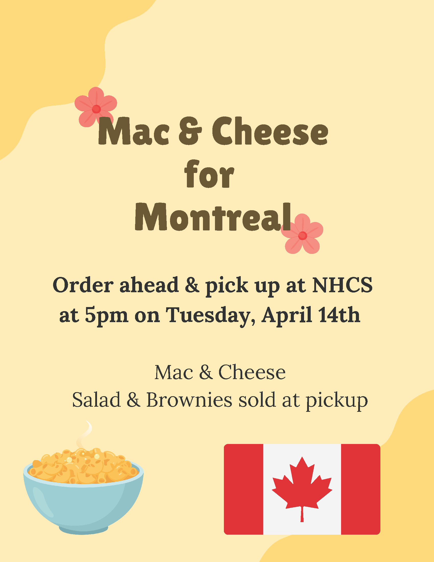 5:00p: Mac & Cheese for Montreal Pick Up Fundraiser @ School